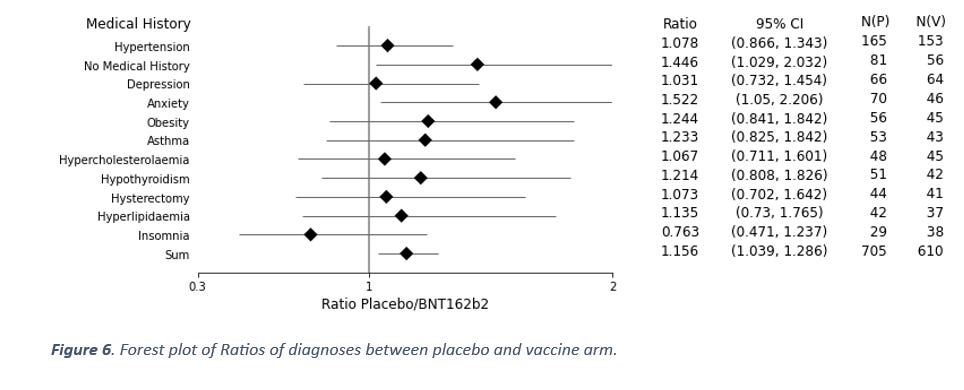 If, on the other hand, there were certain prior diagnoses that predisposed the participants to adverse events from the vaccine and if such cases in the vaccine arm were relabelled as placebo participants, then one would expect these diagnoses to be overrepresented in the placebo arm.