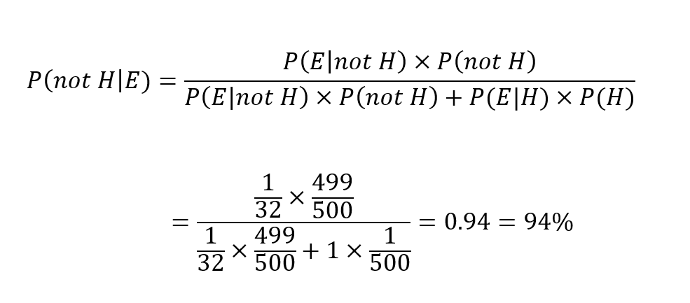 We are assuming P(H) = 1/500, so P(not H) = 499/500