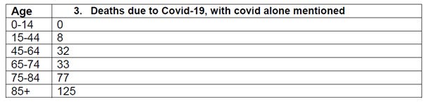 In the entire 4-year period of covid up to March 2024 there were a total of just 275 deaths due to covid alone and that figure includes deaths which mentioned covid with pneumonia.