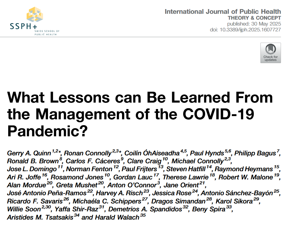 In May 2025 I was one of the many authors of a paper titled “Lessons to Be Learned From the COVID-19 Pandemic”, published in the International Journal of Public Health.